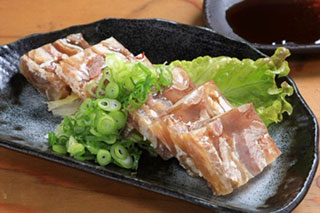 2. 津山市の牛肉食文化津山市の牛肉食文化を語る上で欠かせないのが「養生食い」です。江戸幕府では仏教の教えである「牛馬犬猿鳥の宍(肉)を食することなかれ」という考えや農耕に使用できる貴重な家畜であったため、牛肉などの肉食が禁止されていましたが、作州津山藩と江州彦根藩のみで「養生食い」が認められていました2)。「養生食い」とは、病後の回復や体力増進のために牛肉を食べる習慣を指し、江戸時代後期から明治期にかけて津山地域に広まり、牛肉は滋養強壮の効果があり薬膳的な意味合いで受け入れられていたようです。これらの歴史的背景をもとに、津山市では日常的に牛肉が食卓に上るようになったと伝えられています。その後、畜産業のさらなる発展や、と畜場の整備により新鮮な牛肉(筋肉部分)や内臓肉(ホルモン)が安定的に供給されるようになりました。現在では、B-1グランプリで2度入賞した「①津山ホルモンうどん」や牛のあばら骨の周りの削ぎ落とした(削ぎ落すことを津山弁で「そずる」と言う)肉を使った鍋である「②そずり鍋」、牛の大動脈を細かく切って焼いた「③ヨメナカセ」、干して旨味を凝縮させた「④干し肉」、牛のすじ肉をとろ火で煮込み、スープ状になったものを冷やして固めた「⑤にこごり」など特徴的な料理が数多くあります(図1)。我が国の牛肉の消費量は、2024年に前年比1.5%減となり、5年連続の減少となっています。牛肉の街、津山市においても、更なる牛肉の消費拡大が地元畜産業の発展と観光客誘致への重要な課題の一つです。