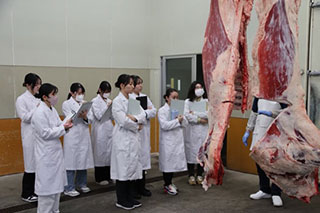 4. 地域貢献に向けた研究進捗状況これまで取り組んできた生食用食肉及び干し肉に関する研究データの一部は学会等で発表しているものの詳細なデータは未公表のため本稿では割愛しますが、地元枝肉加工施設や飲食店、地元の商工会議所等と協働することにより、安心して提供できる生食用食肉や干し肉製品の開発を進めています。また、本学では研究成果を教育活動に還元するために、管理栄養士養成課程の4年生が、卒業研究を通じて、地域の牛肉加工現場での課題解決に取り組んでいます。これにより、学生自身が津山の食文化を理解するとともに、将来的に学生それぞれの出身地域または地元津山市に還元できる人材育成を目指しています。学術研究と教育、そして地域との連携を三位一体で進めることが、持続可能な食文化の継承につながると考えています。